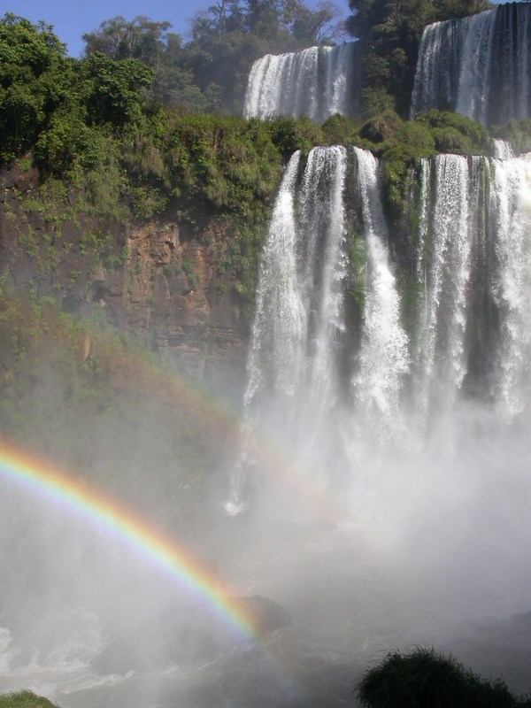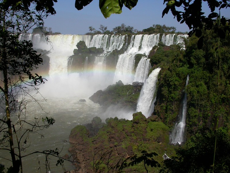 La légende des chutes : Il y a fort longtemps, le fleuve Iguazú était habité par un énorme dieu-serpent appelé Boi. Les indiens guaranis qui habitaient la région avaient coutume de sacrifier une fois par an une jolie jeune fille qui était lancée au fleuve, la livrant ainsi au serpent. Un jour, c’est la belle Naipi qui doit s’y soumettre, mais ce ne fut pas au goût de son amant Taroba, qui la kidnappa la veille du sacrifice. Boi, apprenant cela, est tellement en colère qu’il serpente en tous sens, divisant le cours du fleuve et formant les cataractes. Comme punition, il a aussi transformé les deux amoureux en arbres que l’on peut encore voir aujourd’hui dans la partie supérieure des cataractes avec la chevelure de la belle Naipi comme sauts d’eau. Après cela, le dieu-serpent a été submergé dans la Gorge du Diable et veille à ce que les amants ne soient jamais unis à nouveau… mais dans les jours de plein soleil, l’arc-en-ciel dépasse le pouvoir du mal de Boi et les unit à nouveau…
