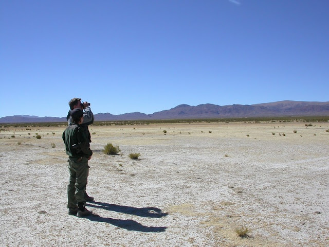 Nous avons tout d’abord visité la lagune seuls, au petit matin (ce qu’il faisait glacial !!). Quelques beaux oiseaux observés, des canards, des avocettes des Andes, mais pas de nandous de Darwin, une des spécialités du coin cependant. Nous revenons donc à l’entrée de la réserve, où se trouve une petite maison de rangers. Marcos y travaille, un ornitho passionné qui a la foi : chaque jour, il se tape les huit kilomètres qui le séparent de la lagune en vélo, par tous les temps, et fait tout un tour sur le bord des rives pour faire des comptages. La technique de transect lui permet, sur une ligne précise, de relever le nombre de nandous et de vigognes. Ce Marcos nous a proposé de venir avec lui dans la réserve, dans des endroits non autorisés au grand public (par ailleurs peu nombreux encore…) afin de compter les nandous !! Bien entendu, nous sautons sur l’occasion, nous montons tous les trois dans notre Fiat Uno louée à Jujuy (lui est bien content d’abandonner pour une fois son vélo) et nous voilà repartis pour la lagune, jumelles autour du cou. Bien vite (alors que nous les avions loupées tout à l’heure…), nous voyons nos premiers nandous. Merci Marcos, qui va nous apprendre plein de choses sur ces oiseaux. Marcos nous a également déniché un flamant des Andes (Phoenicopterus andinus), le seul flamant d’Amérique latine qui me manquait, et le plus rare.