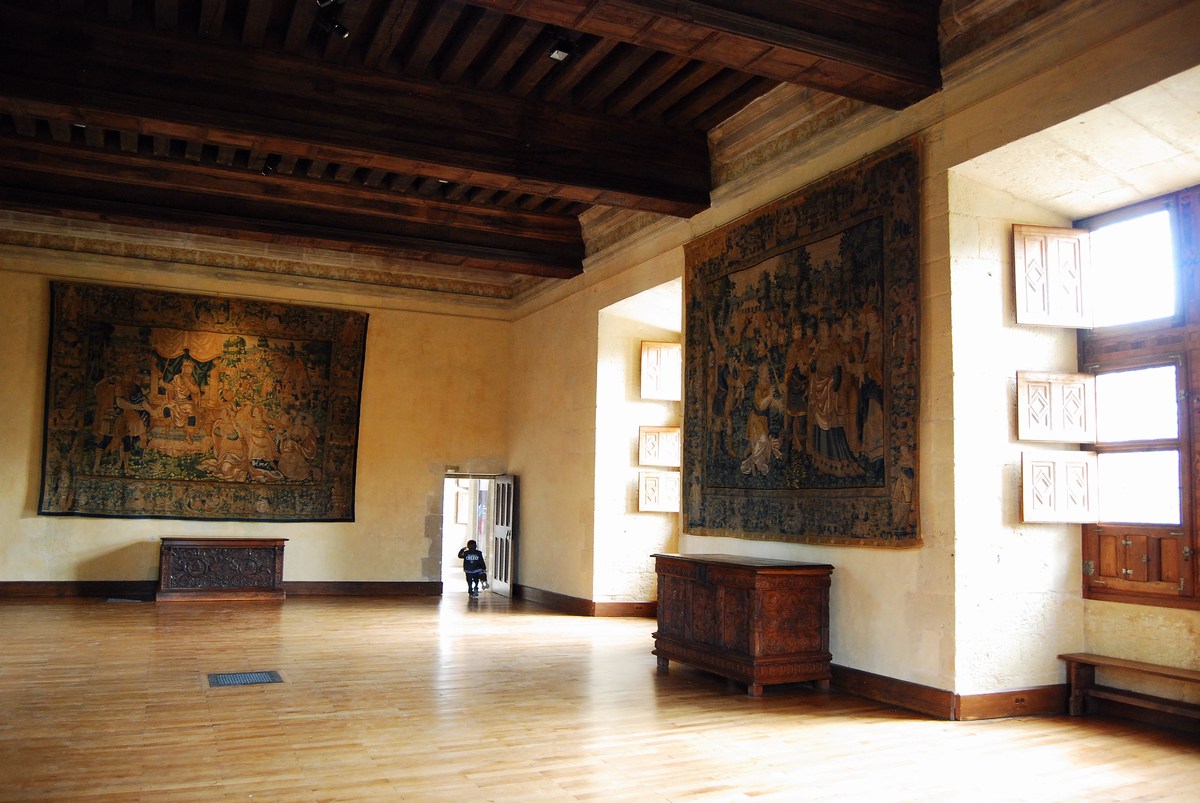 1 - grande salle du premier étage avec des tapisseries des XVI et XVII ème siècles