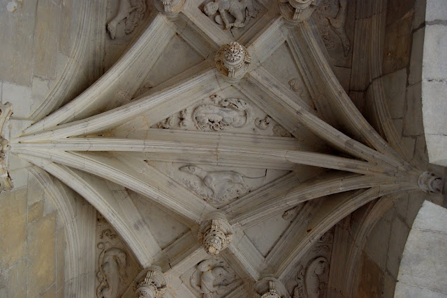 Le plafond à caissons de l’escalier d’honneur. Notez le travail décoratif des clefs de voûte.
