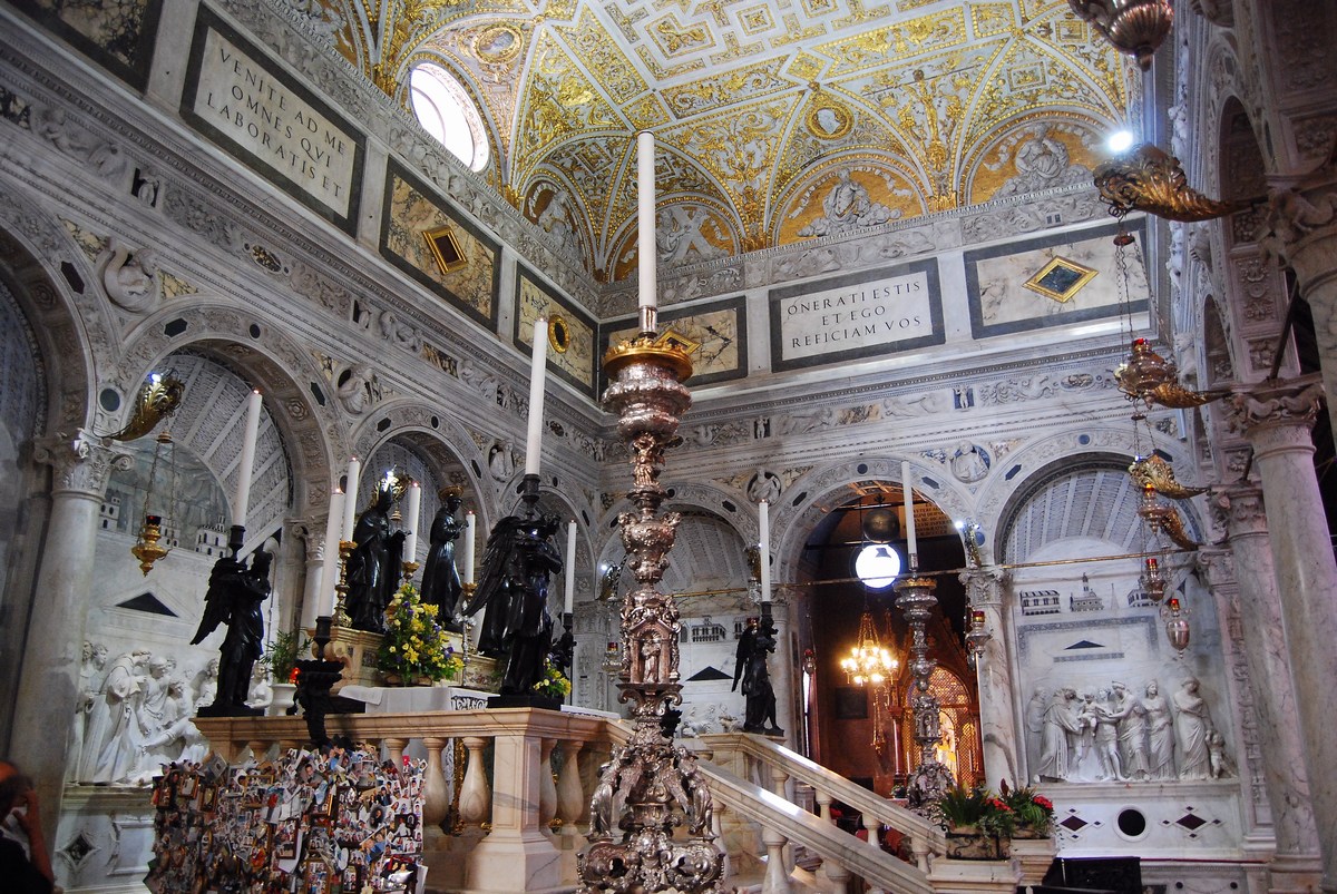 décoration actuelle remonte au XVIème siècle. L’imposant autel, que l’on doit à Tiziano Aspetti,
