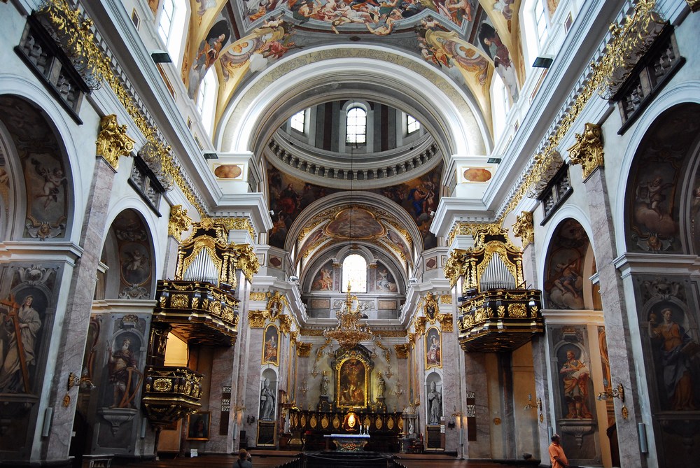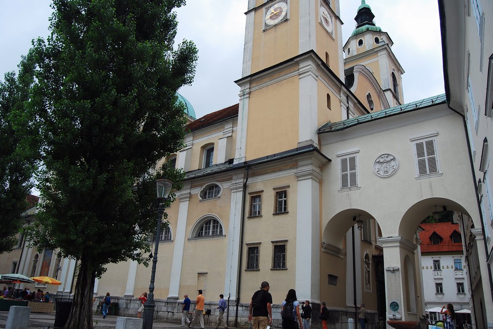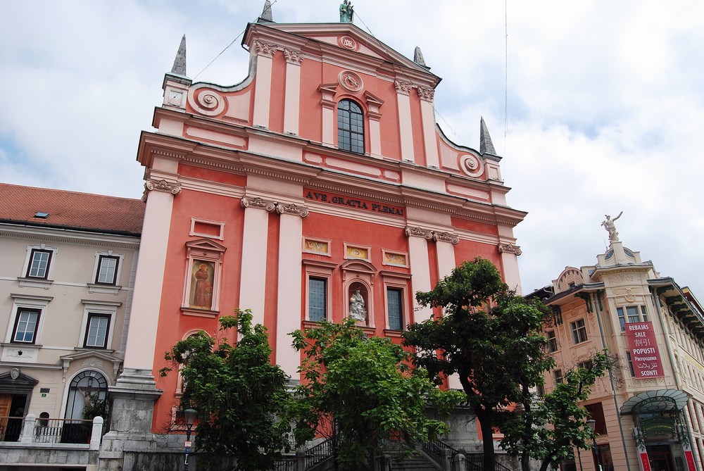 Cette église bordant la vaste place Presernov fut édifiée, en style baroque, entre 1646 et 1660. L’intérieur (photo ci-dessous) est