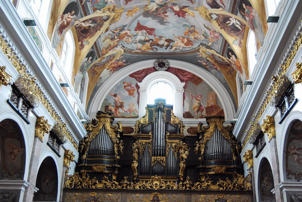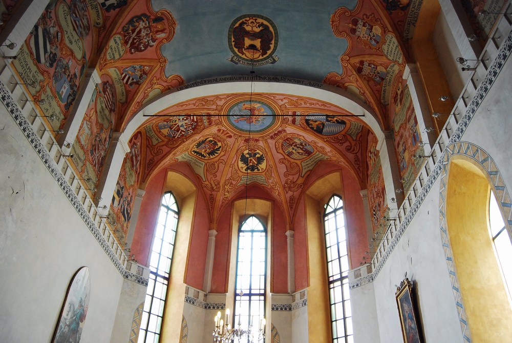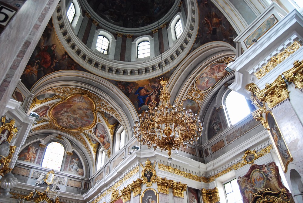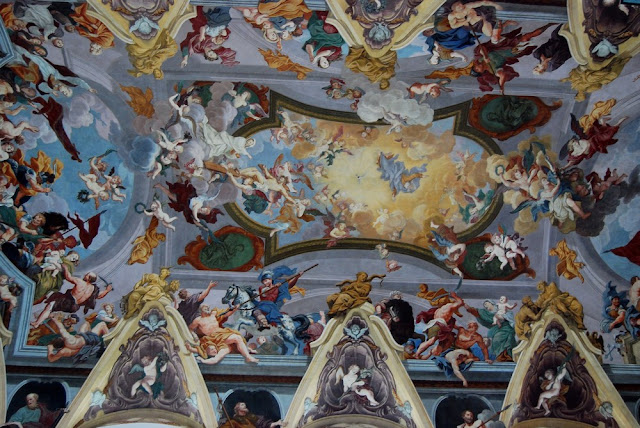 Les fresques de l’intérieur sont dues à Quaglio au XVIIIème siècle. La conception générale reprend celle de