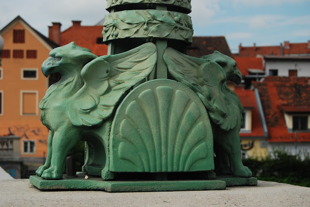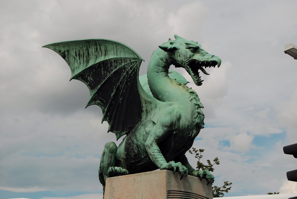Pourquoi ce symbole ? La mythologie grecque nous apprend que lors de leur retour de Colchide d’où ils ramenèrent la fameuse toison d’or, Jason et ses compagnons, les Argonautes, seraient passés par là après avoir remonté le Danube. Démontant leur bateau pour rejoindre l’Adriatique, ils seraient arrivés au bord d’un grand lac habité par un terrifiant dragon. Jason le mit en pièce, et le fabuleux animal devint le symbole de la ville qui allait être construite en cet endroit. Une autre légende, plus ancienne, met en scène le célèbre Saint Georges terrassant le dragon, célébrissime métaphore du christianisme mettant à mort le paganisme.