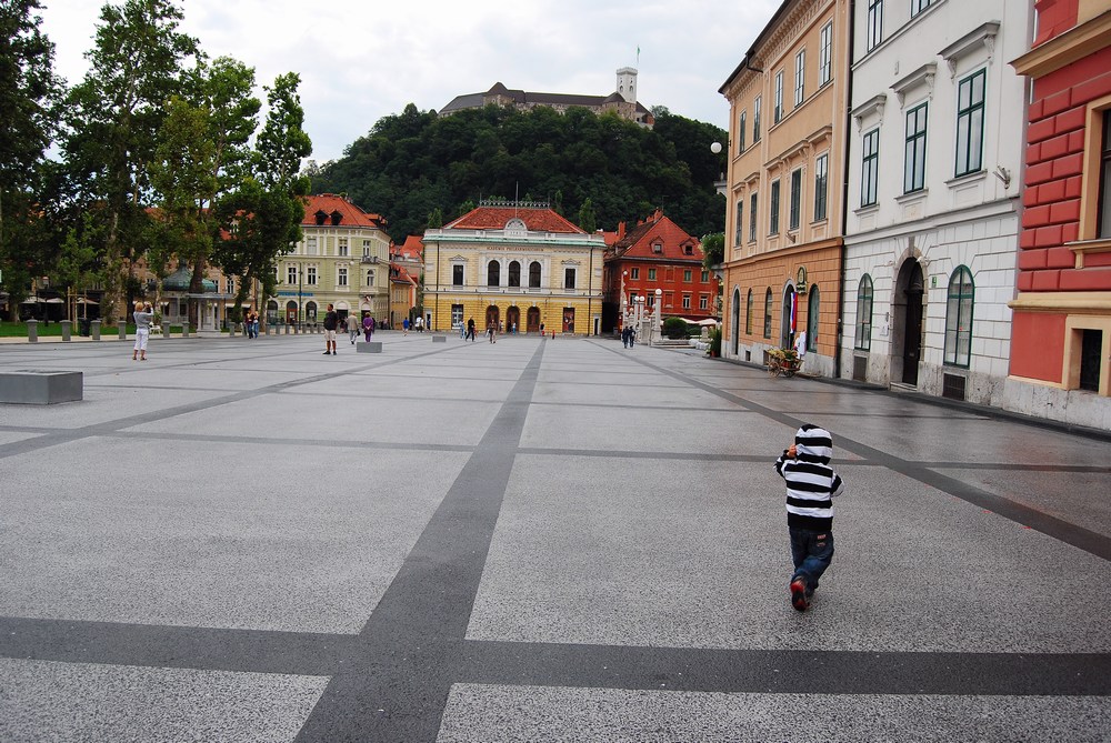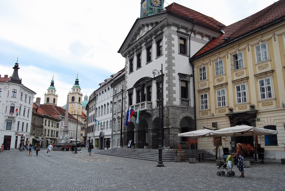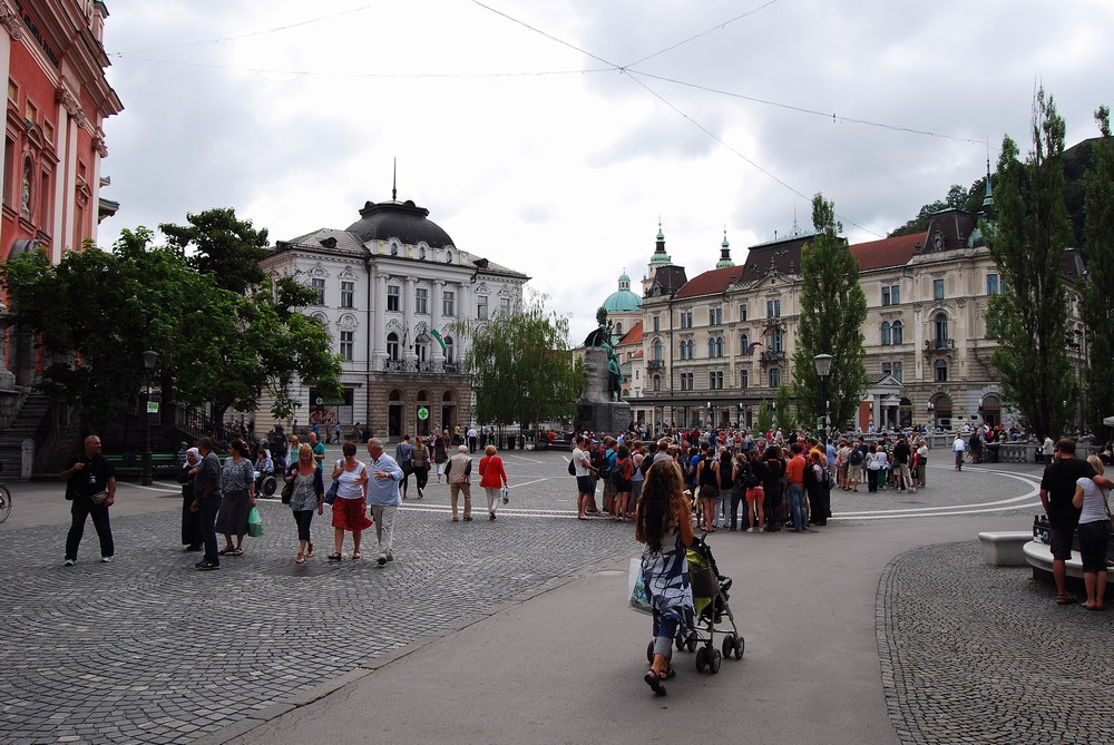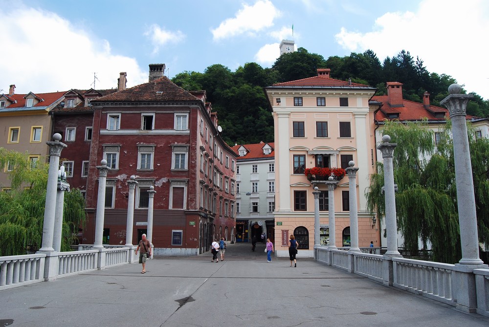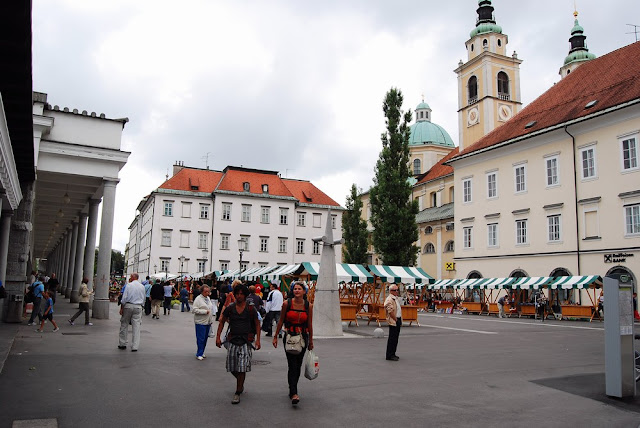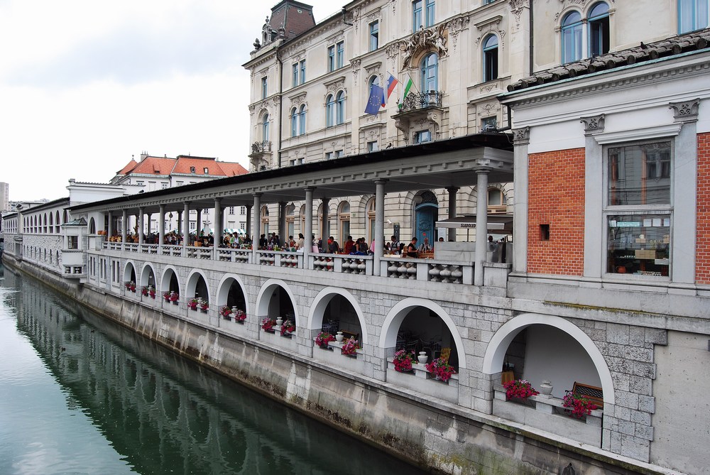 La place Vodnik accueille un long marché couvert sous une élégante colonnade, concue au milieu du siècle