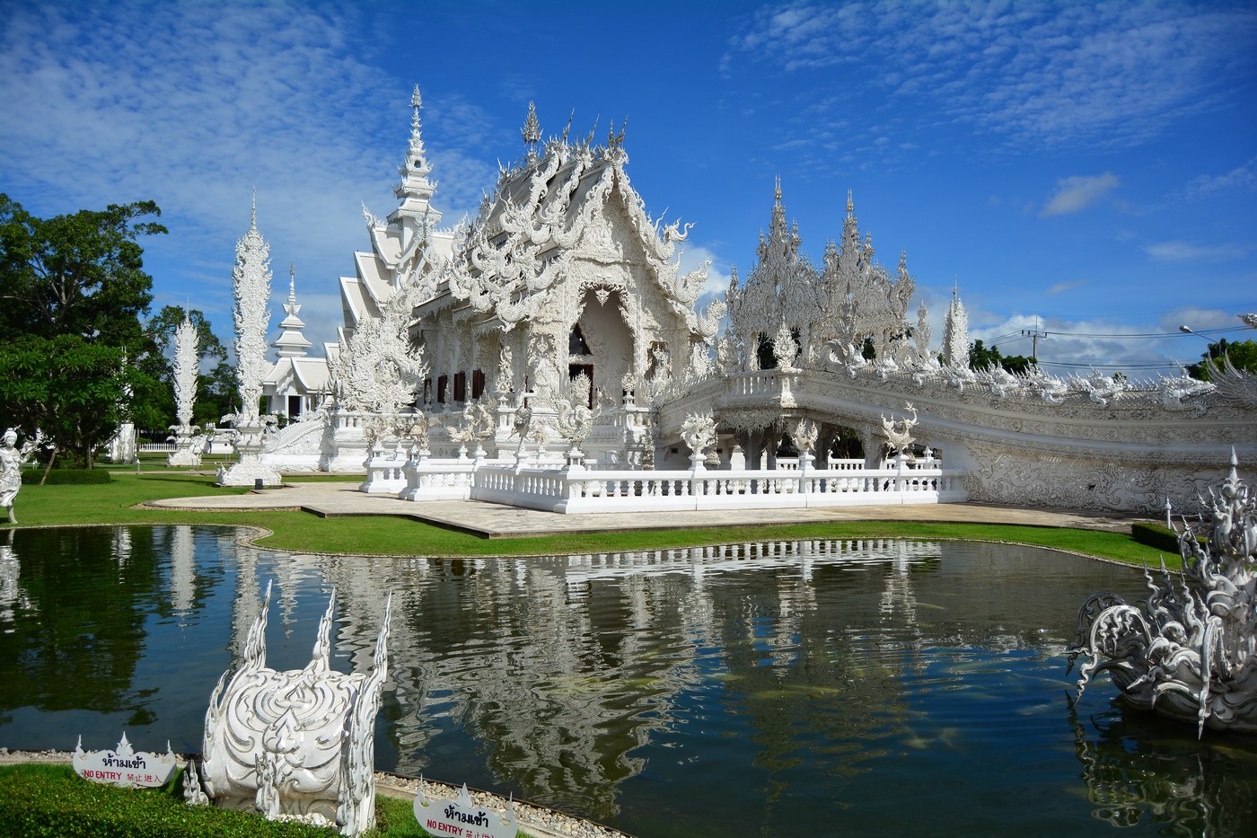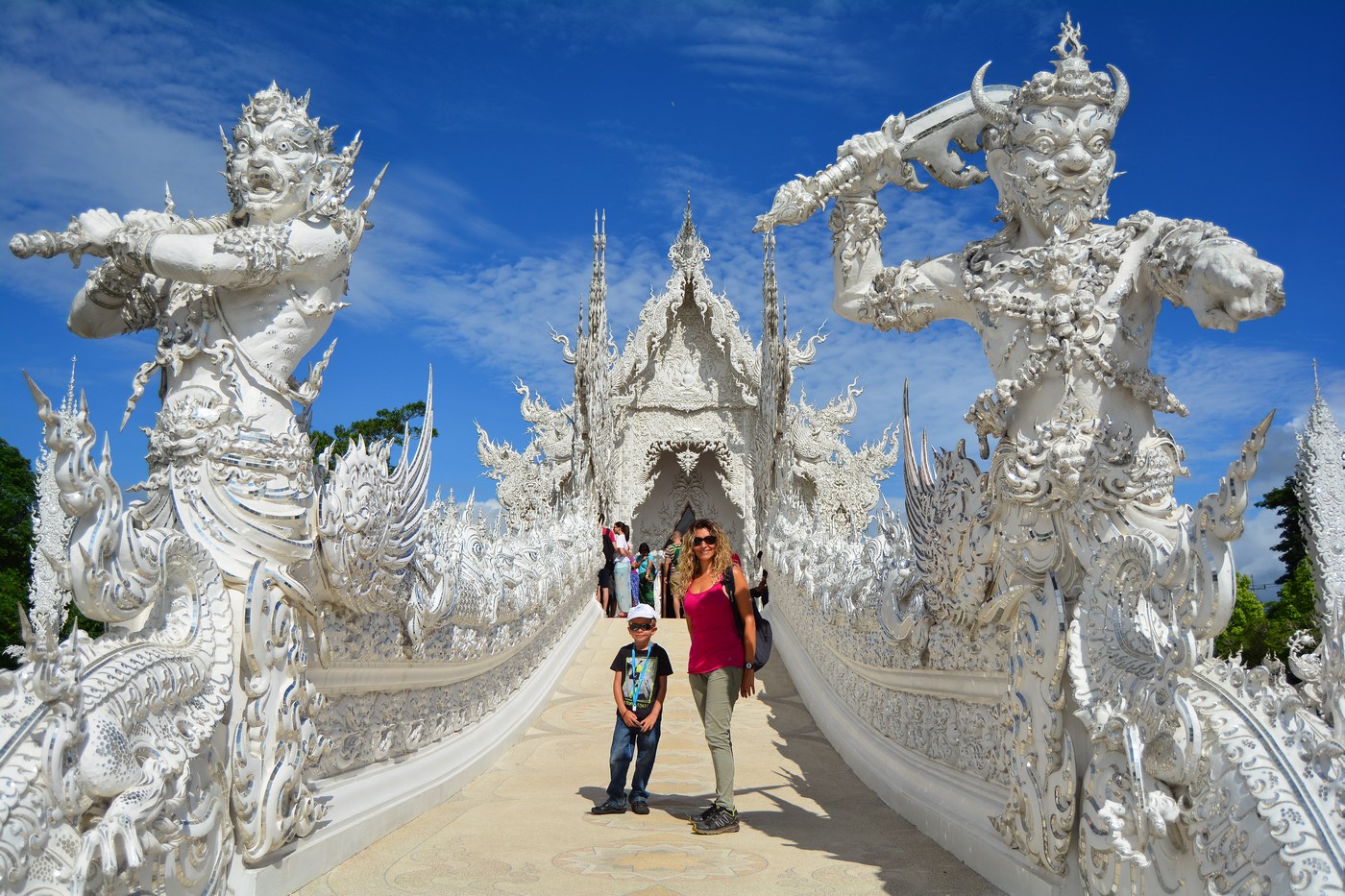 Chiang Rai est la plus grosse ville du Nord du pays. Très longtemps birmane, elle ne fut proclamée province de Thaïlande qu'en 1933 ! Le paysage aux alentours est plat, nous sommes dans la plaine alluviale d'un des affluents du Mékong, la rivière Kok. La ville en soi n'est pas extraordinaire, mais possède deux ou trois beaux temples, dont un abrite la statue vénérée du bouddha d'Emeraude, et Chiang Rai est un passage obligé pour ceux qui veulent se rendre plein Nord, dans le Triangle d'Or, à seulement 60 kilomètres de là. Nous en profitons pour également découvrir le temple blanc Wat Rong Khun, une extravagante folie douce...