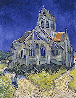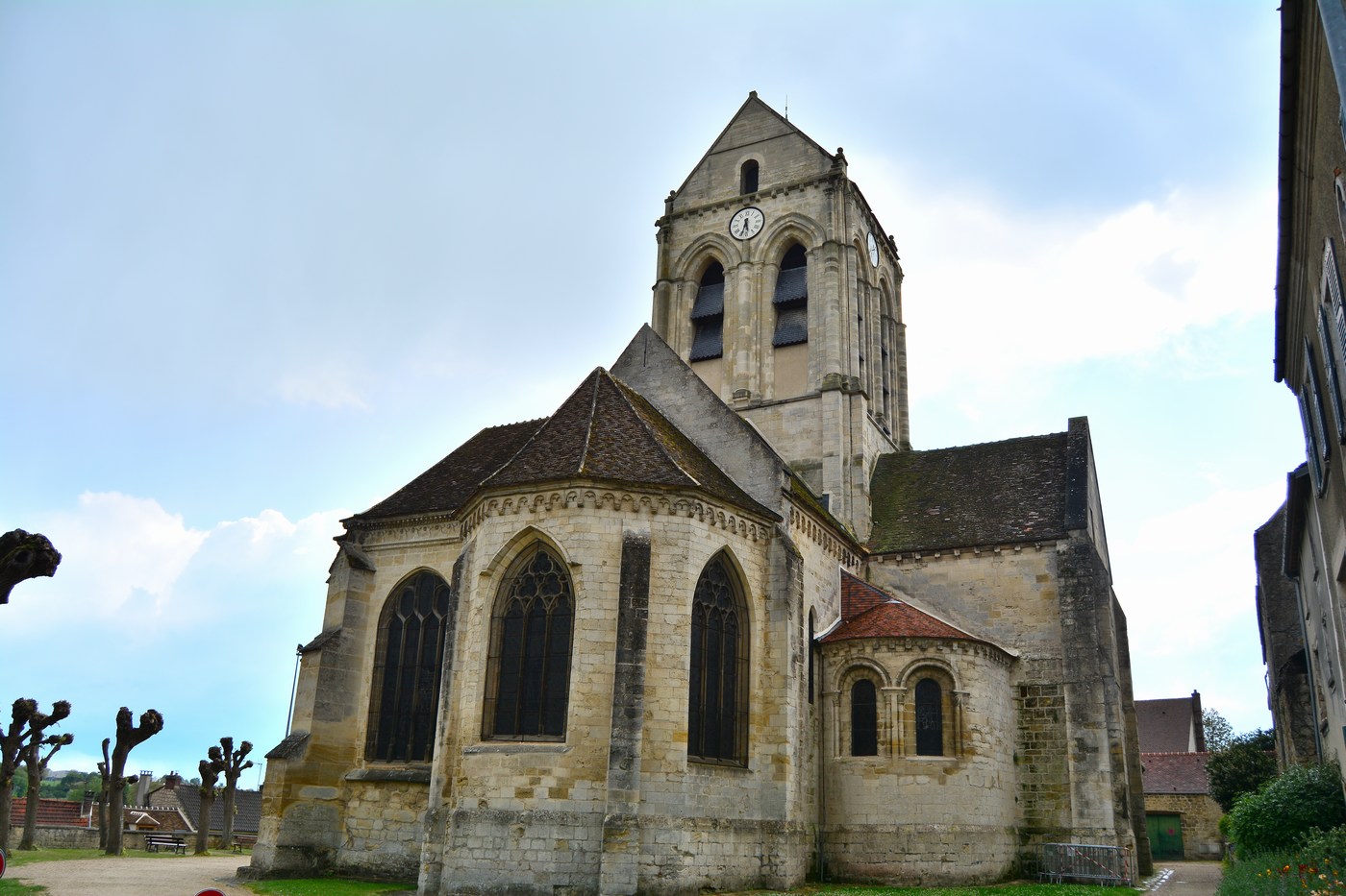 Il faut imaginer Van Gogh se tenir ici, en 1890, alors qu'il venait de quitter l'asile de Saint-Rémy-de-Provence. Il passe là, soigné par le docteur Gachet, les dernières semaines de sa vie, dont découleront plus d'une centaine de toiles. De cette église romano-gothique, il en tire cette oeuvre mondialement connue, avec une architecture déformée et d'apparents paradoxes, tel ce ciel nocturne alors que le jour est bien présent : le bas du tableau semble avoir été peint à midi, l'église avec les ombres allongées en fin d'après-midi, et le haut la nuit...