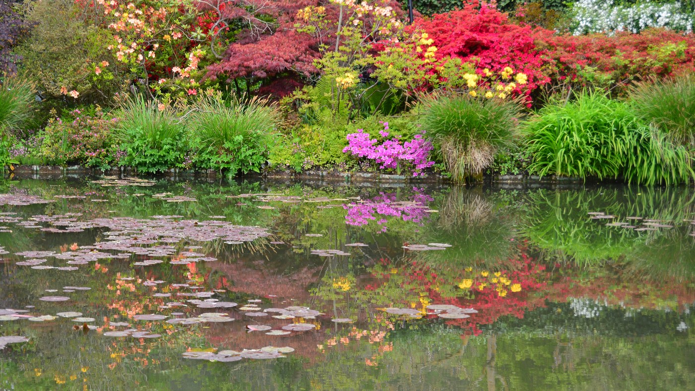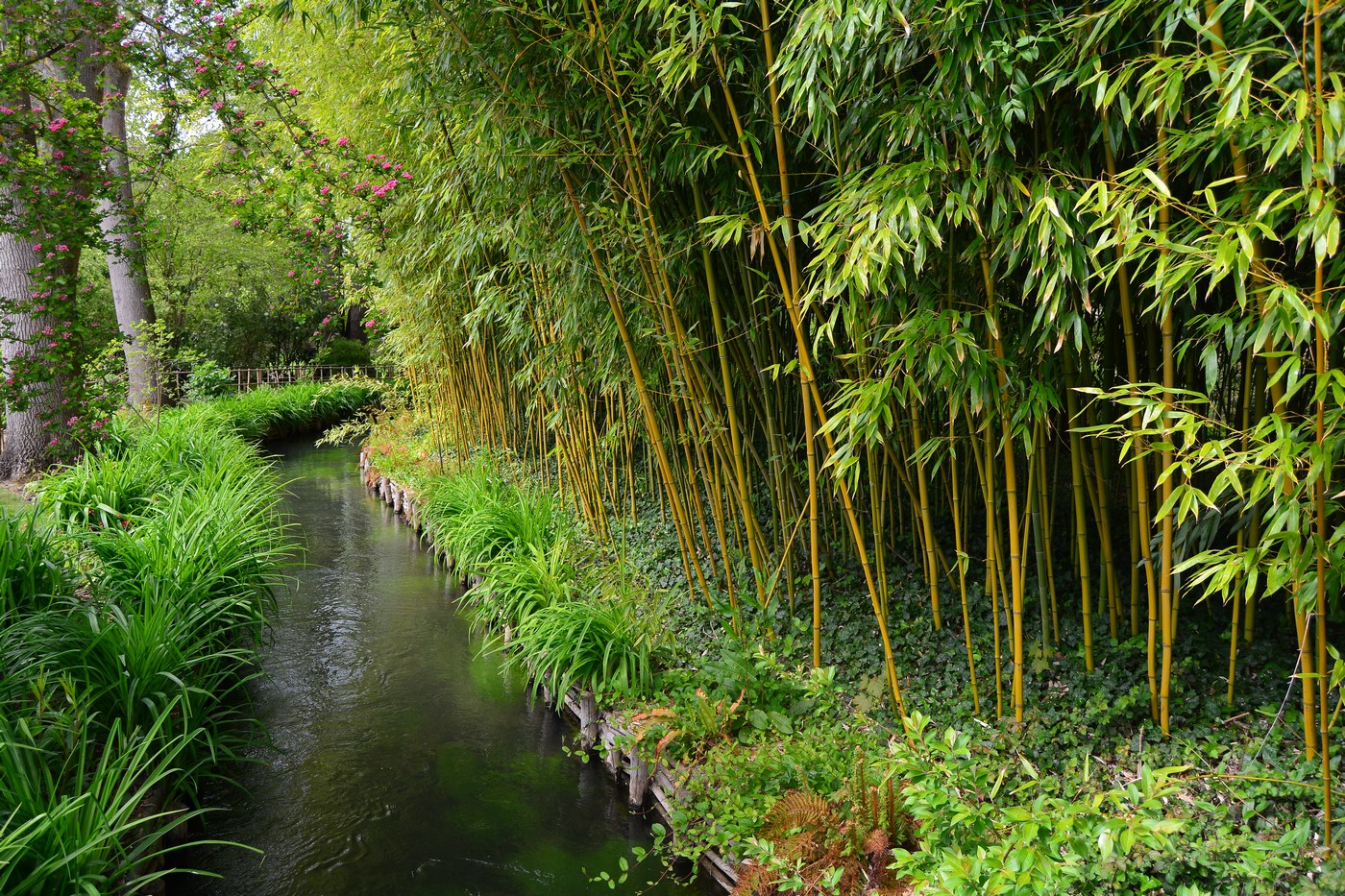 C'est un peu pour ce jardin que l'on vient à Giverny, il faut le dire ! Qui n'a pas rêvé un jour de voir où Monet puisait son inspiration de ses fameux nymphéas, qu'il a peints par centaines ? Partout à travers le monde, en commençant par l'Orangerie à Paris, dont une immense salle leur est consacrée, les musées exposent des oeuvres du peintre mettant en scène ces plantes aquatiques. Et c'est ici, à Giverny, sur ce terrain acquis en 1893, que Monet recherche les infinies variations de lumière sur ses toiles. Il fait détourner un petit bras de l'Epte, le Ru, afin de créer un bassin qui deviendra le "Jardin d'eau". Au fond, il fait installer un pont japonais (Japon et Chine ont le vent en poupe à cette époque) qu'il peint en vert, pour rompre avec le rouge traditionnel. Afin de poursuivre la piste asiatique, il fait planter à proximité des bambous, des ginkgos ou des lis. Lui qui aimait tant l'eau mais également les plantes ajoute les fameux nymphéas. Et voilà une source inépuisable d'inspiration ! Il y passait des heures chaque jour, demandant à son jardinier employé à temps plein d'en ôter la moindre feuille morte afin qu'il reste immaculé.