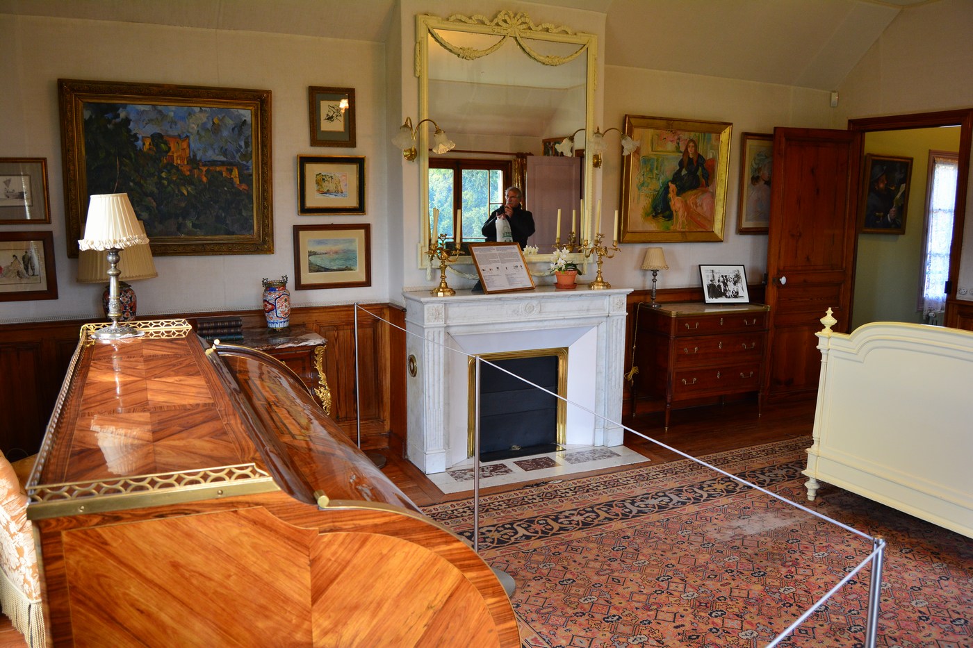 La chambre de Monet, occupée jusqu'à sa mort le 5 décembre 1926. Il exposait dans sa chambre des toiles de ses amis Sisley, Cézanne, Pissarro, Renoir...