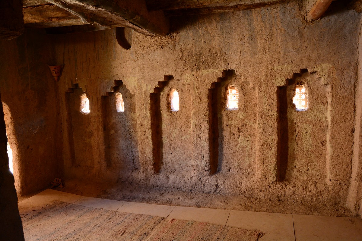 Il y a trois niveaux d'habitations dans la kasbah d'Amerhidil : le bétail occupe le premier, les visiteurs le second, et le caïd et sa famille le dernier (on appelle caïd au Maroc le chef d'une tribu). Les murs sont épais, le pisé (mélange de terre et de paille) ayant fait ses preuves en tant qu'excellent isolant. On retrouve aussi des pièces à vivre, une mosquée, une école et la cuisine. Un vrai petit village !