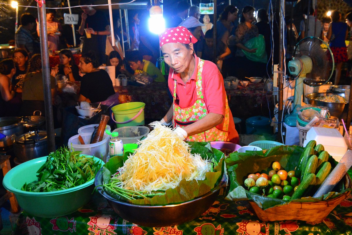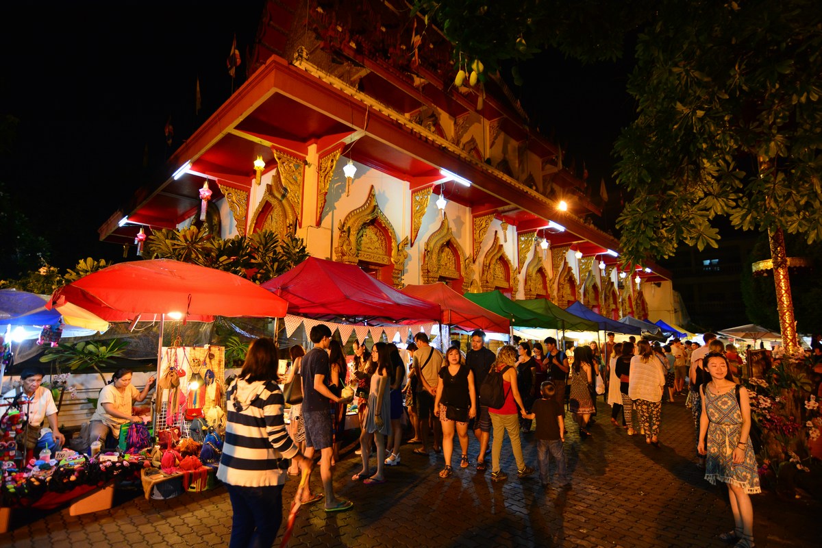 Chiang Mai c'est aussi son night market, un marché animé qui a lieu dans la vieille ville à la tombée de la nuit. On y trouve de quoi manger bien entendu, mais aussi de l'artisanat.