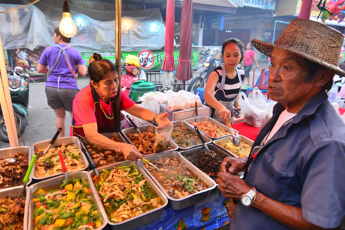 | Scène de vie sur le marché de Chiang Mai. |