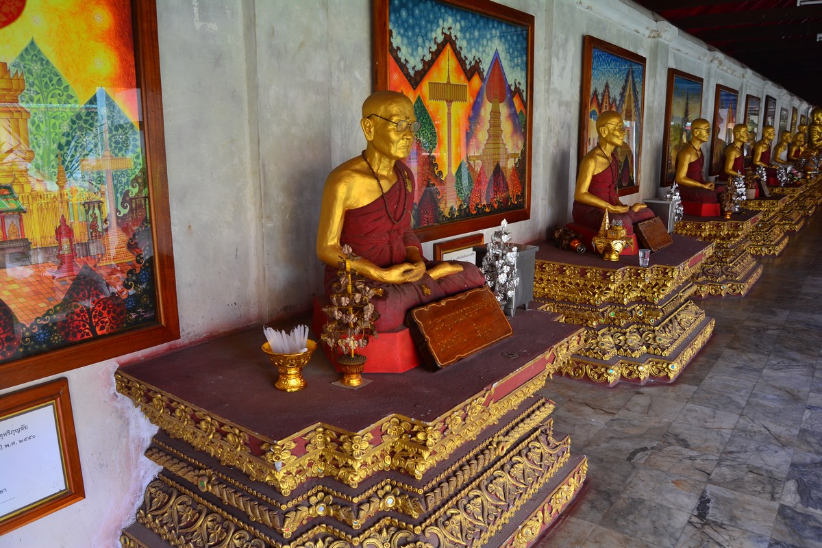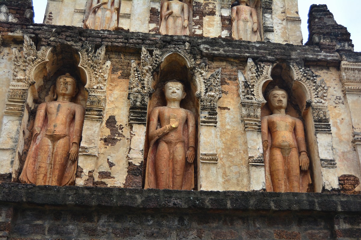 | Détail des Bouddhas du chedi Mahabol. |
