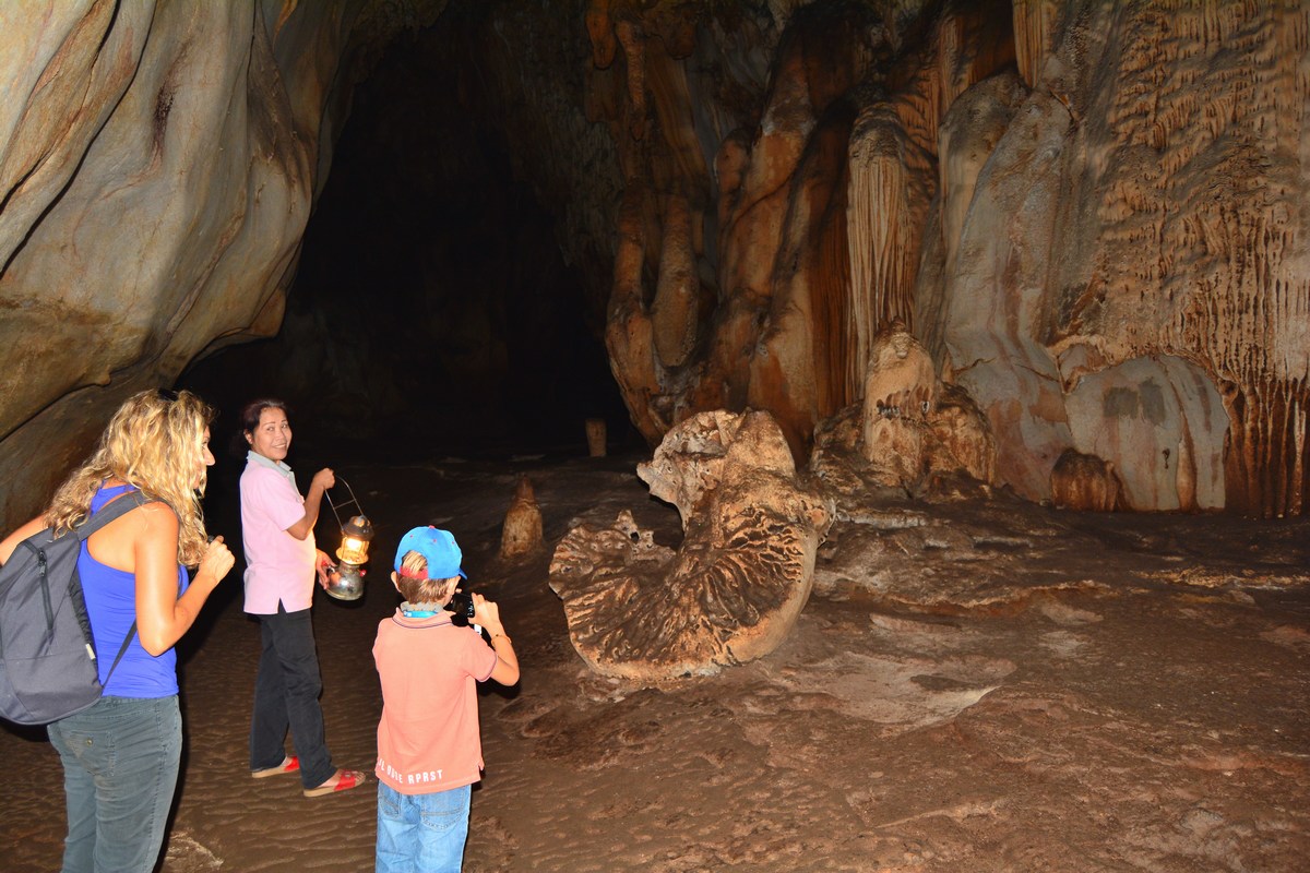 A la découverte des concrétions de la grotte de Chiang Dao.