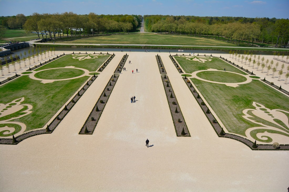 L'immense parc (photos ci-dessus) fait partie du projet initial impulsé par François Ier. Le but est de constituer un grand enclos clôturé à l'intérieur duquel du gibier pourra être lâché, la chasse étant un grand passe-temps du monarque. Le château prend place pile au milieu de ce domaine boisé, le plus grand ceint de murs en Europe. Quant aux jardins à la française devant le bâtiment, ils ne datent pas de la Renaissance, mais de l'époque du Roi Soleil, qui commande l'aménagement de jardins réguliers devant la façade. C'est, enfin, au courant du XVIIIème siècle que le jardin de 6,5 hectares voit le jour.
