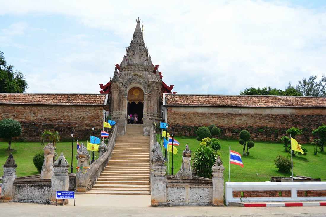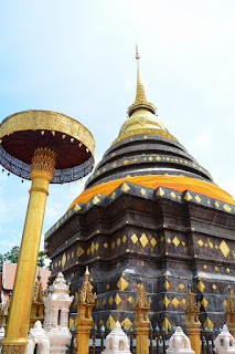 Entrée monumentale du Wat Phra That, entouré de ses fortifications. Quand vous avez 'phra' dans un temple, cela veut dire 'relique". Bon, la plupart des temples affirment posséder des reliques. Ici, ce sont des os et des cendres de Bouddha qui, après sa crémation, auraient été recueillis et enfermés dans le chedi principal (le stupa en forme de monticule).