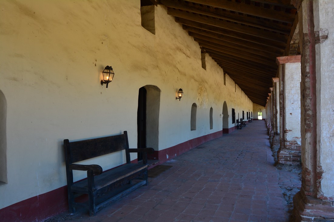 Il a fallu 60 ans aux catholiques espagnols pour fonder un ensemble de 21 missions, entre 1769 et 1833, dans ce vaste territoire que l'on appelle aujourd'hui Californie. L'objectif était clair et affiché dès le départ : convertir les autochtones, par la force s'il le fallait, au catholicisme, et les faire devenir des citoyens coloniaux espagnols. Pour ce faire, de nombreuses missions furent fondées partout dans l'Amérique espagnole, de l'Argentine à la Californie, Haute (aujourd'hui la Californie) et Basse (cette longue péninsule, territoire mexicain). Chaque mission avait pour objectif de se suffire à soi-même, en devenant une structure autonome pour nourrir ses habitants, à une époque où la Californie était sauvage et éloignée de tout. Les pères fondateurs avaient besoin de bras, pour cultiver la terre et s'installer durablement. C'était le rôle des amérindiens convertis. L'église était toujours le premier bâtiment à être construit, le plus important. On essayait de conserver le traditionnel axe est-ouest afin de célébrer la messe face au soleil levant. A partir de là, les autres bâtiments utiles à la communauté pouvaient prendre place : habitations, cuisines, entrepôts... le tout la plupart du temps formant un immense rectangle.