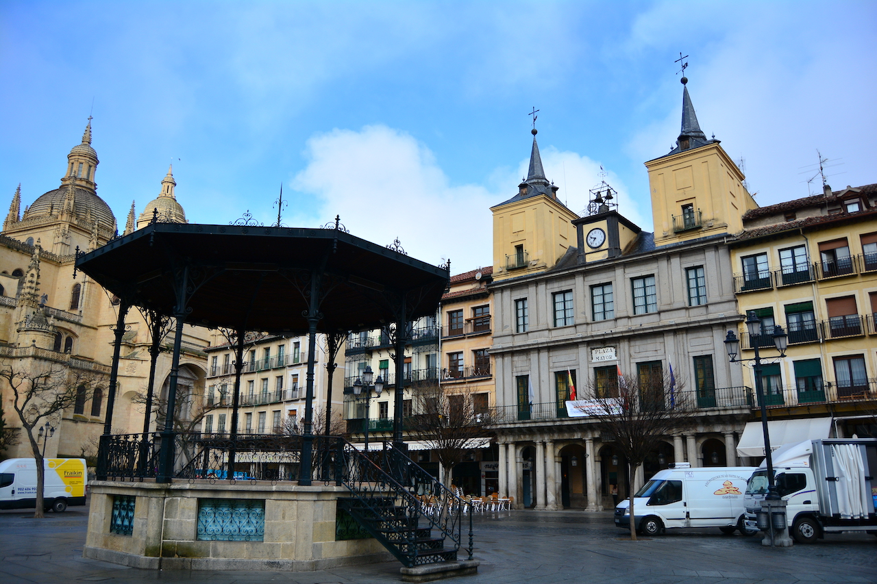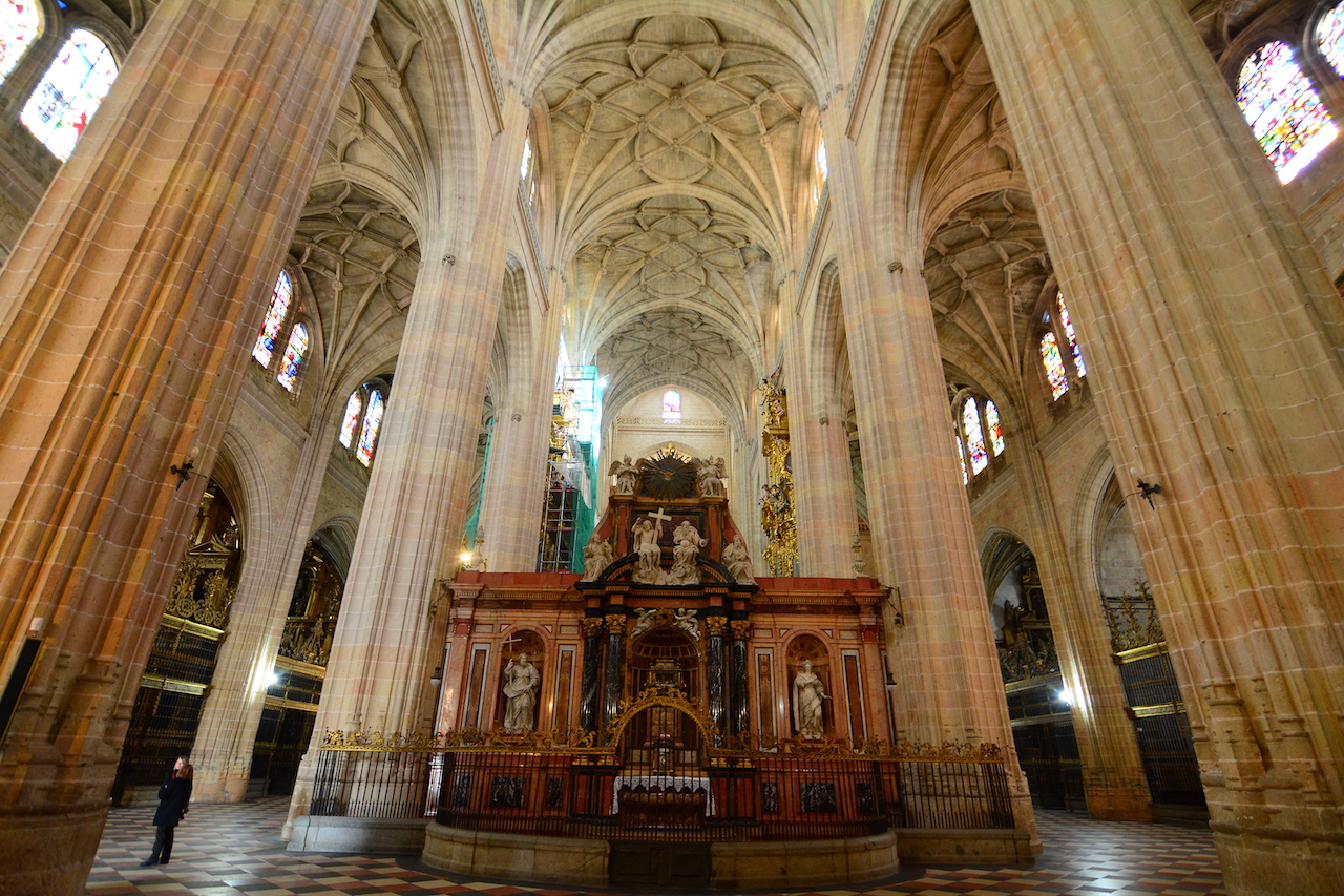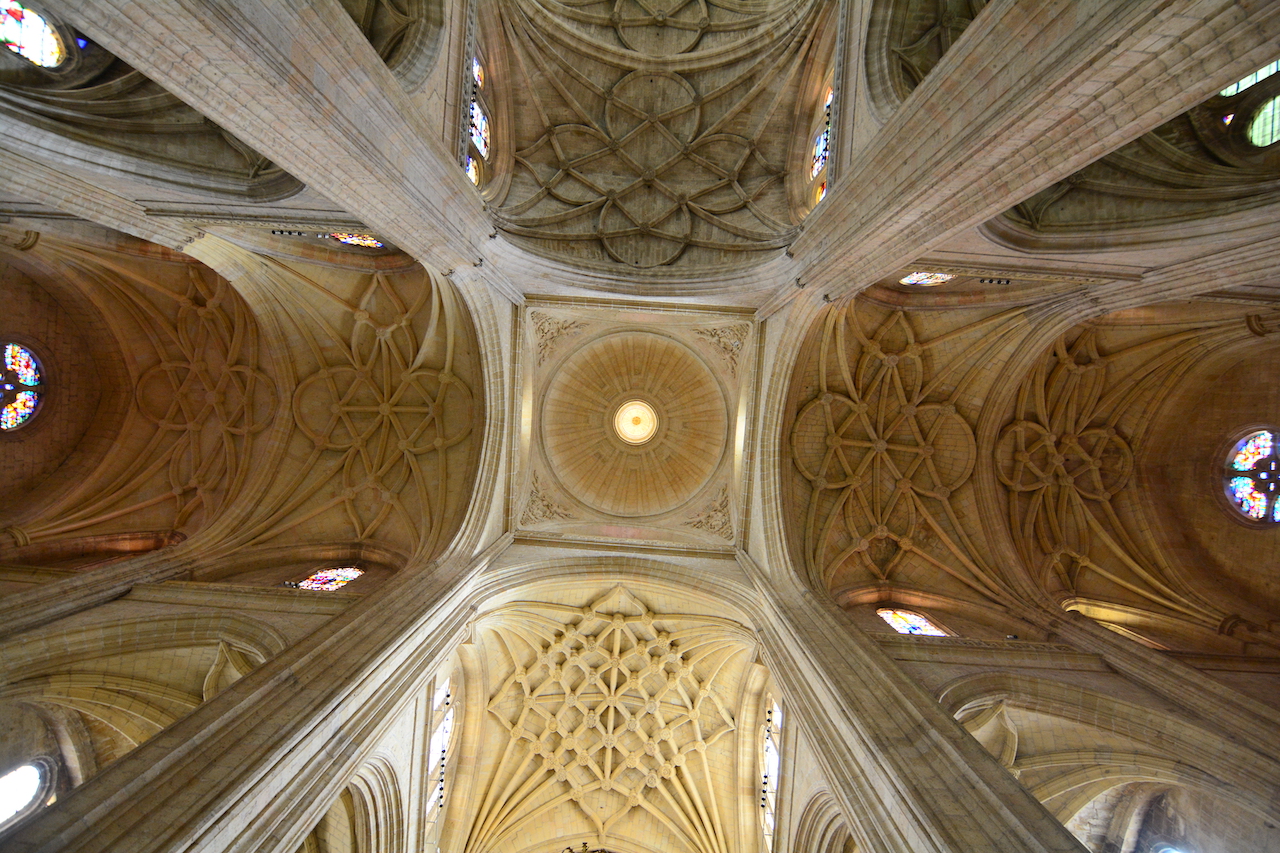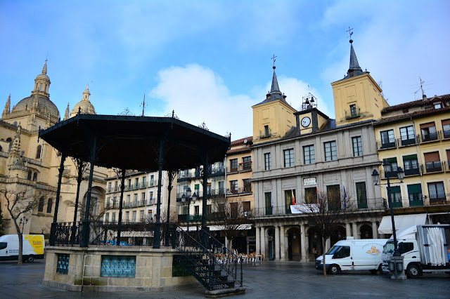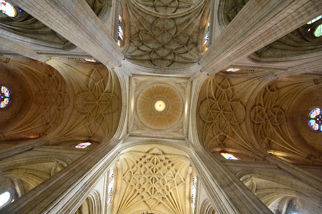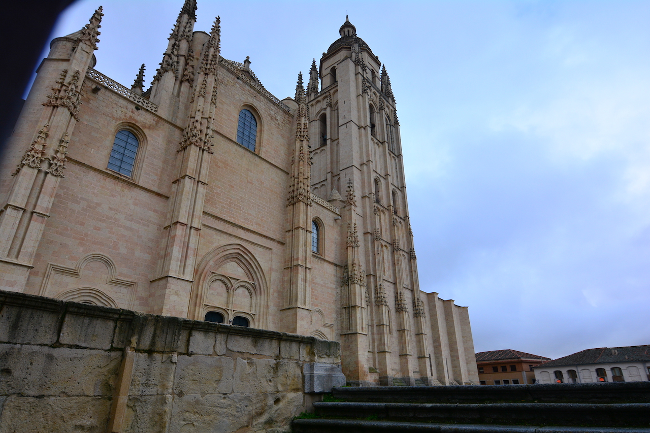 Changement d'époque, changement de décor : le Moyen-Age avec l'édification de la belle cathédrale, la dernière de style gothique construite en Espagne, avec également des éléments Renaissance. Nous sommes effectivement au XVIème siècle, à une période charnière de l'Art, durant le règne de Charles Quint. Ségovie est florissante grâce au commerce de la laine et de la draperie. Dès lors, il fallait remplacer l'ancienne cathédrale romane. Il en résulta un nouvel édifice en partie gothique tardif, en partie Renaissance, ce nouveau mouvement venu d'Italie.