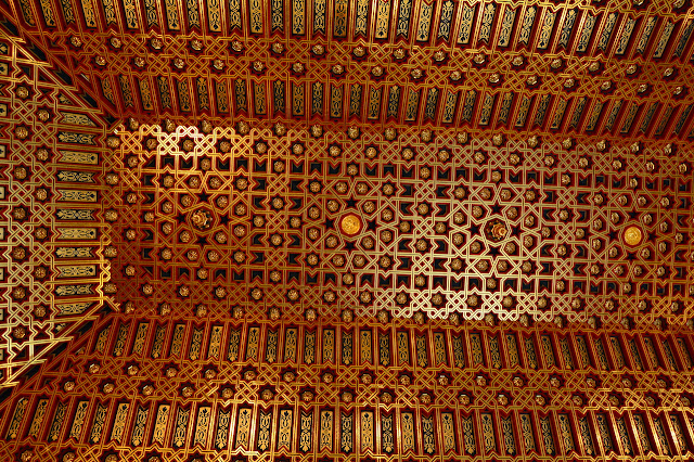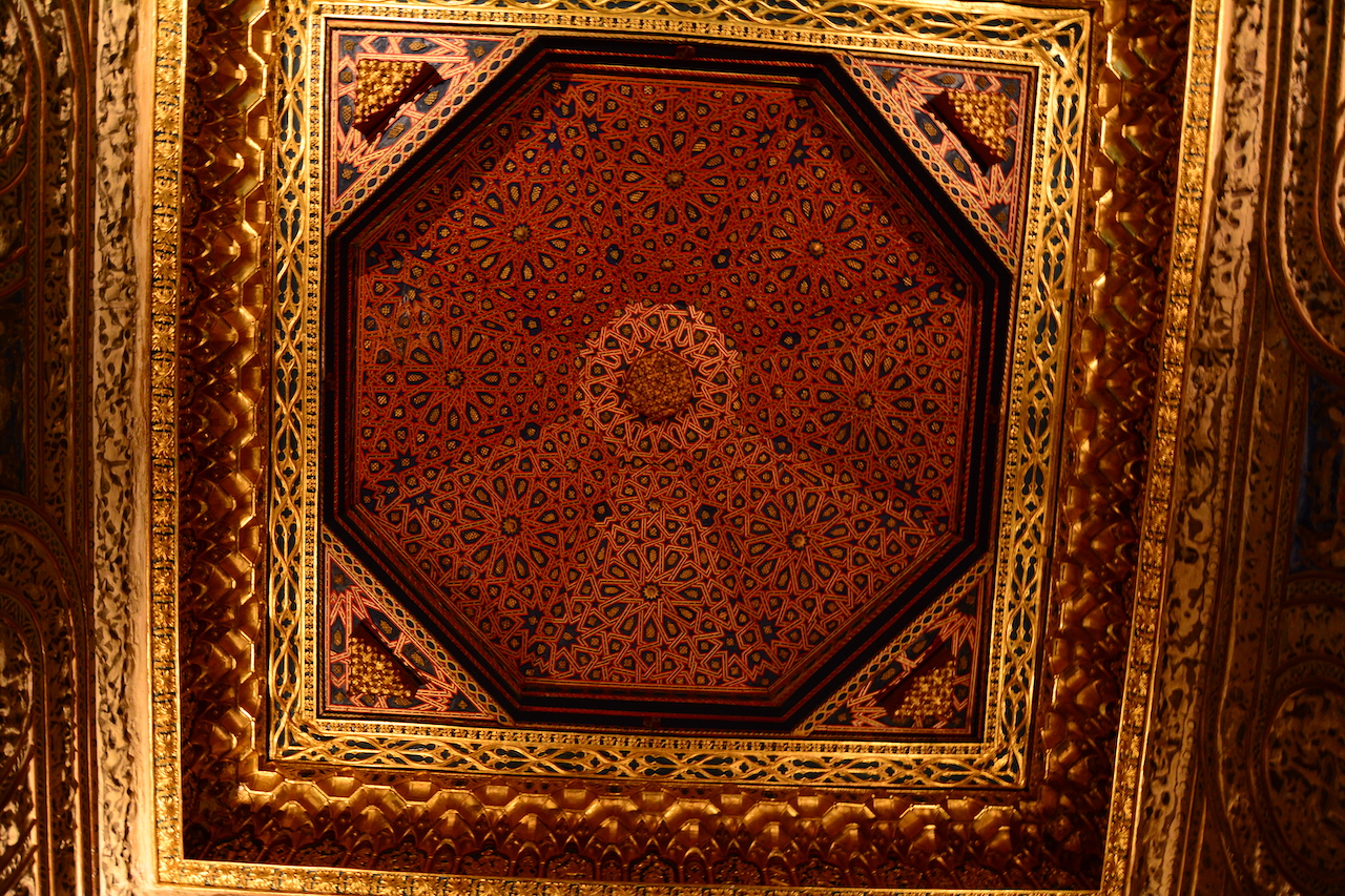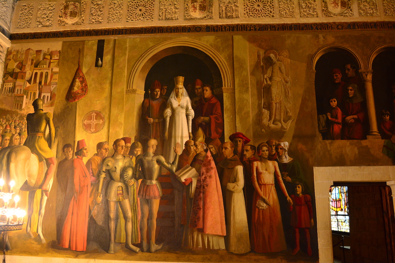 La belle salle de la galère, qui tire son nom de l'ancien plafond à caissons qui avait la forme d'une coque de navire renversée. Elle date du XVème siècle. La frise en plâtre qui court autour est mudéjar. Au fond, la grande fresque met en scène Isabelle la Catholique lors de son couronnement en tant que reine de Castille et de Leon dans une église de Ségovie.