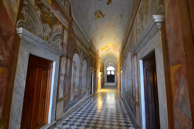 La grande chartreuse de Pise est située à 10 km à l'Est de la ville, sur la commune de Calci. Les visites, guidées, se font toute la journée et permettent de découvrir l'histoire de ce vaste bâtiment fondé au XIVème siècle sur les ordres de l'archevêque de Pise. Cette visite est surprenante car en entrant dans une chartreuse, on s'attend à beaucoup d'austérité dans le décor, la même qui accompagnait la vie des religieux (voir plus bas). Mais c'est de l'exubérance et du baroque qui vous attend ici ! Si quelques artistes florentins sont venus la décorer en même temps qu'ils achevaient le Duomo au XVème siècle, la majeure partie de la décoration s'est faite durant les XVII et XVIIIème siècles, dans le plus pur style baroque.