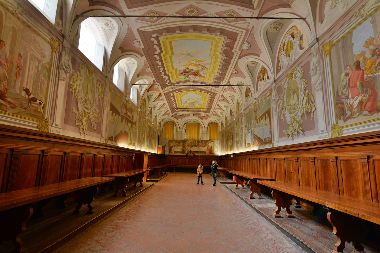 Réfectoire : les fresques sont du XVIIIème, sauf la Cène au fond, du XVIème, attribuée à Bernardino Poccetti.