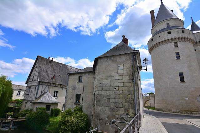 A l'extérieur toujours, parmi les jardins, il y a le seul vestige de l'ancienne forteresse, le donjon de Foulques Nerra, un seigneur de la fin du XIème siècle qui, après sa conquête des terres de la région, fit ériger sur la partie la plus haute surmontant la Loire un donjon défensif, qui sera le seul à ne pas être détruit après la guerre de cent ans. Il est aujourd'hui équipé d'un échafaudage médiéval en bois comme ceux qui étaient utilisés à l'époque.