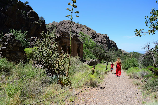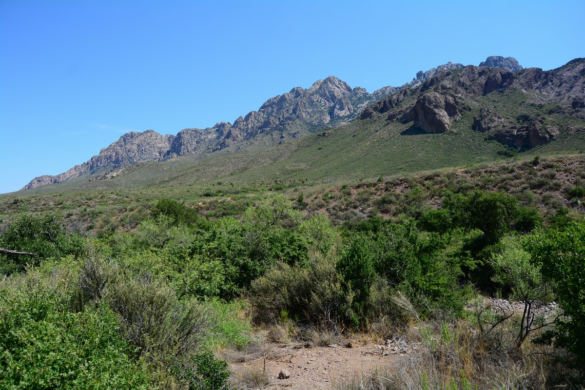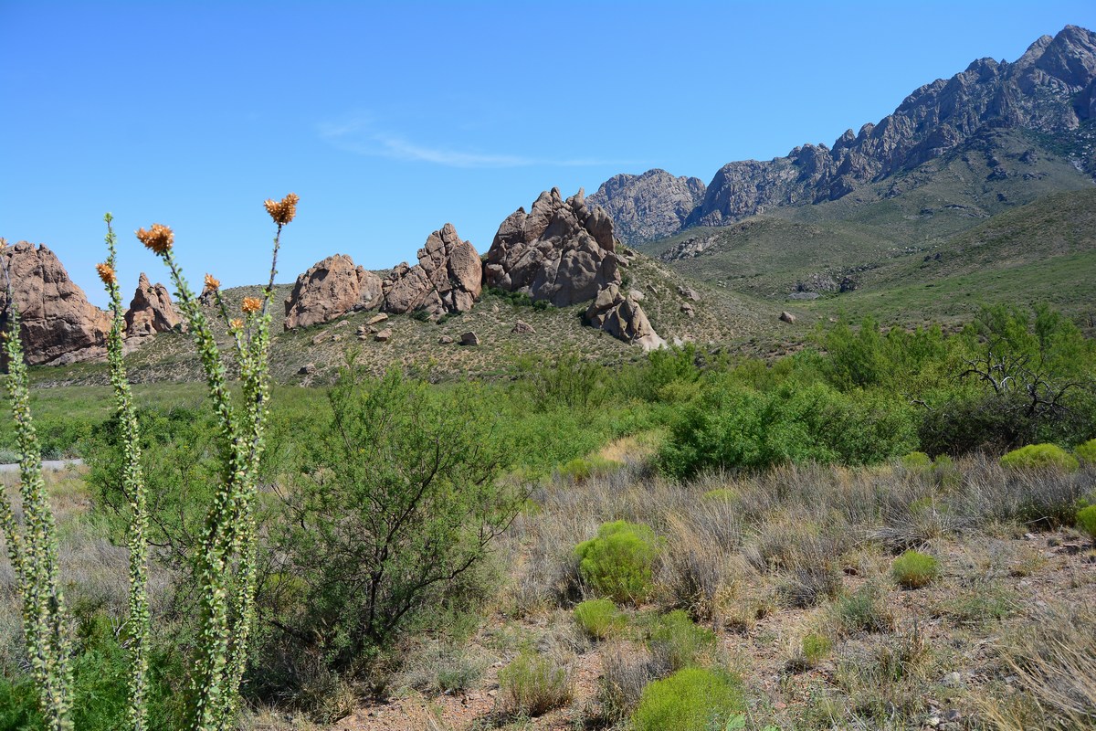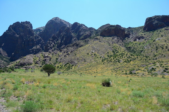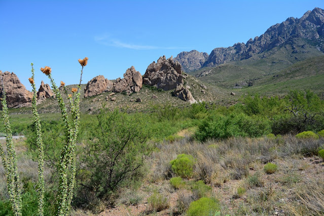 Géographiquement parlant, nous sommes dans le désert de Chihuahua. La rando que nous avons choisie est celle de Dripping Springs, réputée pour ses "murs en pleurs", des cascades qui, en dehors de la période sèche, coulent le long de hautes parois. Par ailleurs, prendre ce sentier qui s'engage vers les hautes montagnes vous permettra de croiser en chemin des vestiges de bâtiments établis dans les années 1850 pour desservir le camp de Van Patten. Et n'oubliez pas les jumelles, il y a pas mal d'oiseaux dans le coin, ainsi que de beaux papillons... Compter 2 bonnes heures aller-retour sur un chemin très facile, légèrement montant. Aucune difficulté.