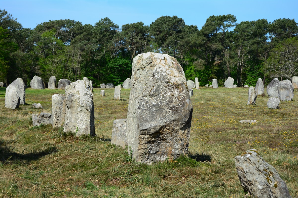 Les alignements de Carnac sont l'ensemble de mégalithes le plus célèbre du pays. Ils auraient été érigés entre 4000 et 2000 avant notre ère, au néolithique, et, si la signification exacte de tels ensembles nous échappe encore de nos jours, l'atmosphère mystérieuse qui s'en dégage est, elle, intacte. Des menhirs, sur l'immense commune de Carnac, il y en a partout, en plusieurs regroupements : Ménec, Kermario... mais vous trouverez aussi des menhirs isolés dans la forêt, ainsi que des dolmens. C'est bien simple, vous aurez de quoi faire dans cette région qui possède la plus grande concentration de mégalithes au monde !