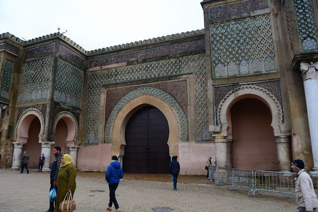 Bab Berdaine est une des plus belles portes de tout le pays. Elle marque une des entrées de la médina. C'est le sultan Moulay Ismaël qui la fit ériger au XVIIème siècle. Le but est avant tout défensif, comme on peut l'imaginer, flanquée de ses deux grosses tours crénelées. Mais l'aspect massif est atténué par la magnifique décoration en céramique au-dessus de l'arc.