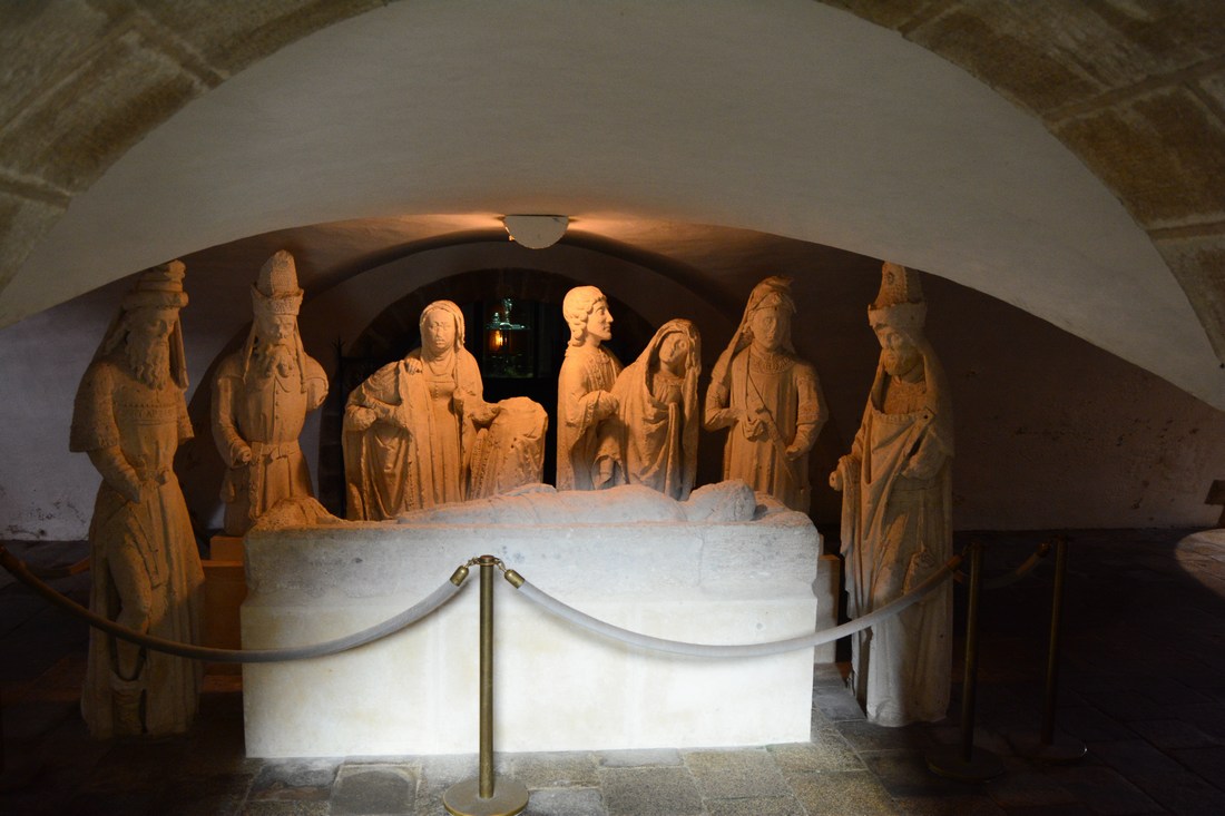 - le groupe sculpté de la mise au tombeau (ci-dessous à droite) datant de la fin du XVème siècle et représentant dix statues qui proviennent de la chapelle des Dominicains de Quimperlé. L'oeuvre a échappé à la destruction du bâtiment après la Révolution.