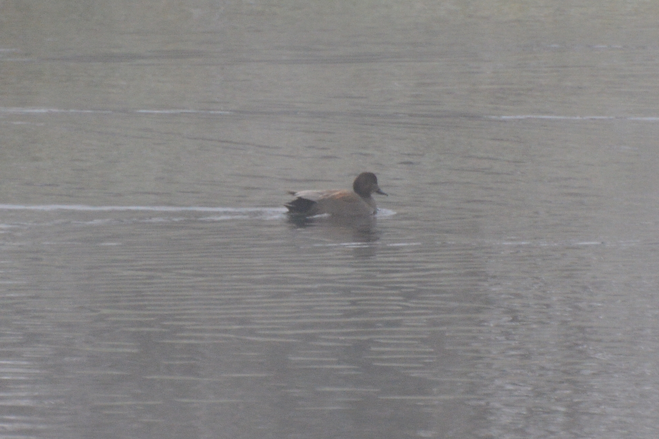 | Mareca strepera - Canard chipeau - France 72 le mâle est de couleur grise avec une extrémité arrière noire et un speculum brillant blanc particulièrement évident ; apprécie les zones humides ouvertes et se nourrit la tête submergée tandis qu'il barbote (on voit souvent leur arrière train levé à la verticale). |