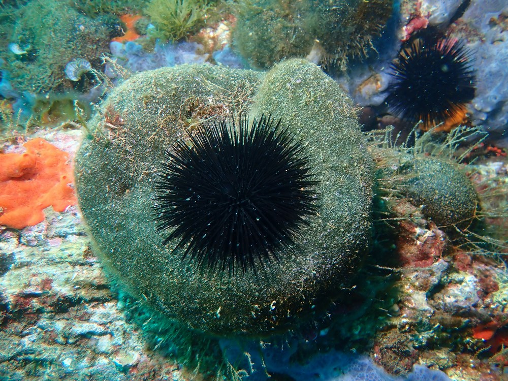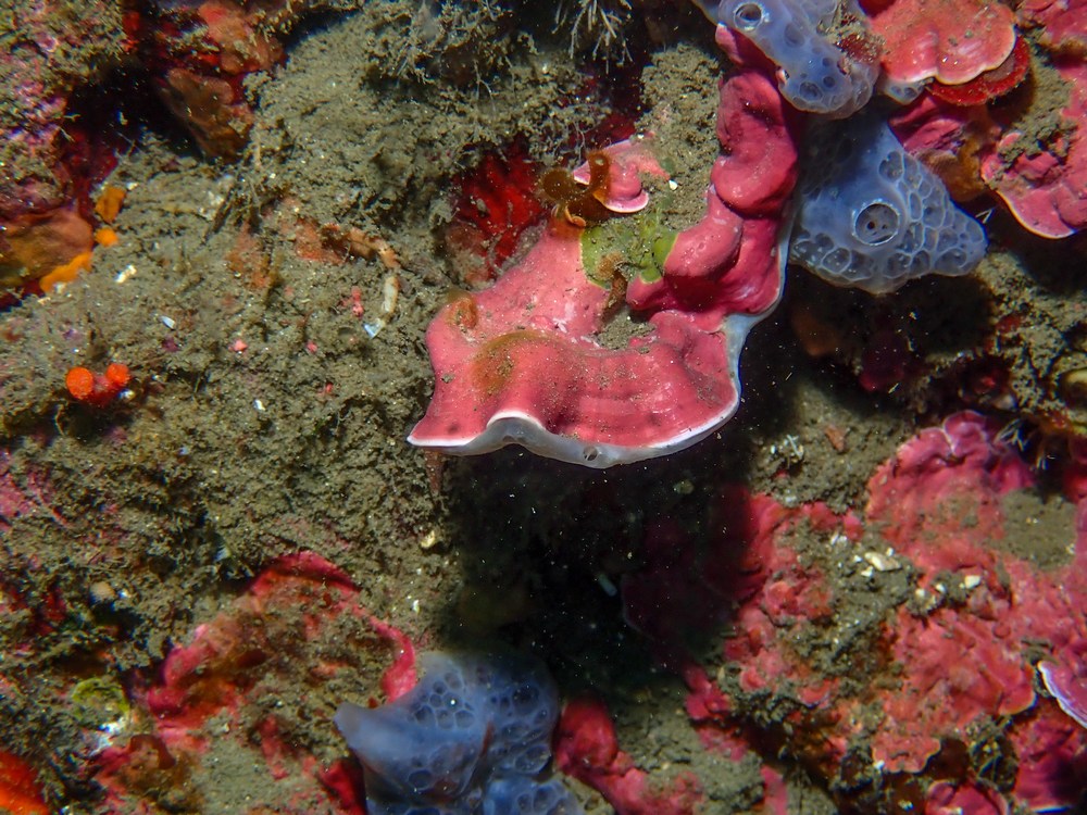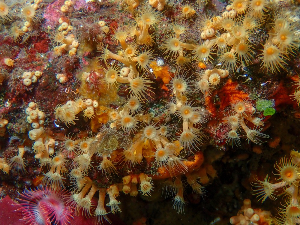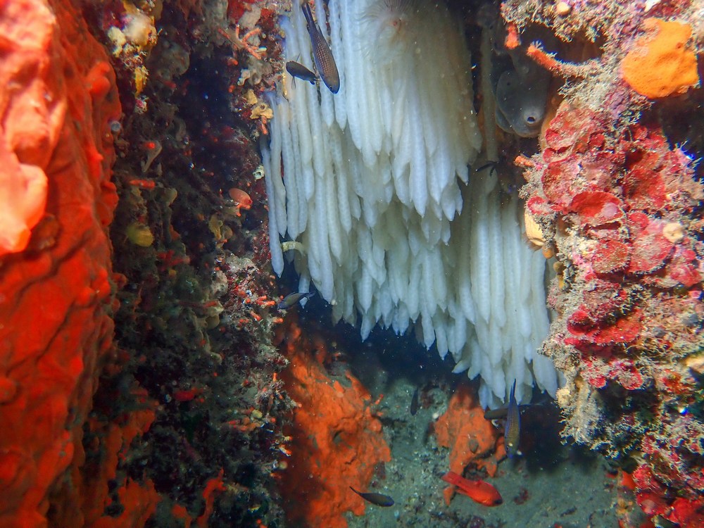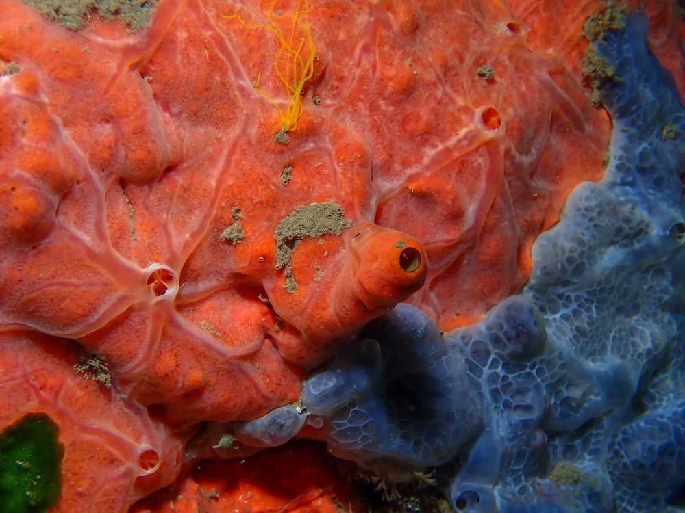 | Crambe crambe et Phorbas tenacior, deux éponges qui se côtoient |