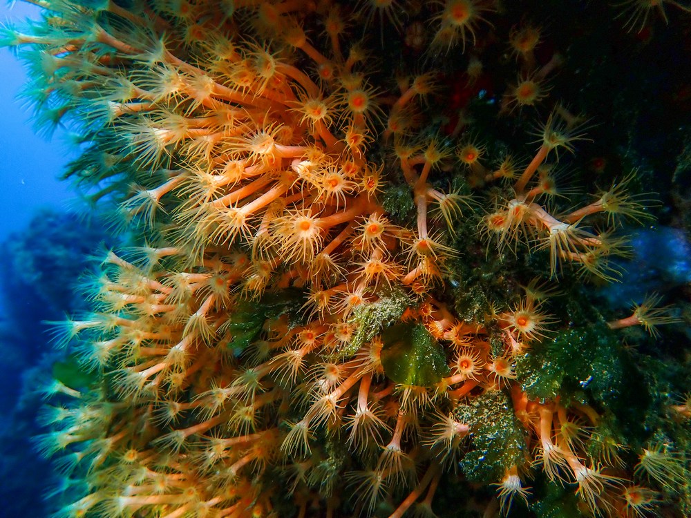 | Magnifique bouquet de Parazoanthus axinellae, l'anémone encroûtante jaune. |
